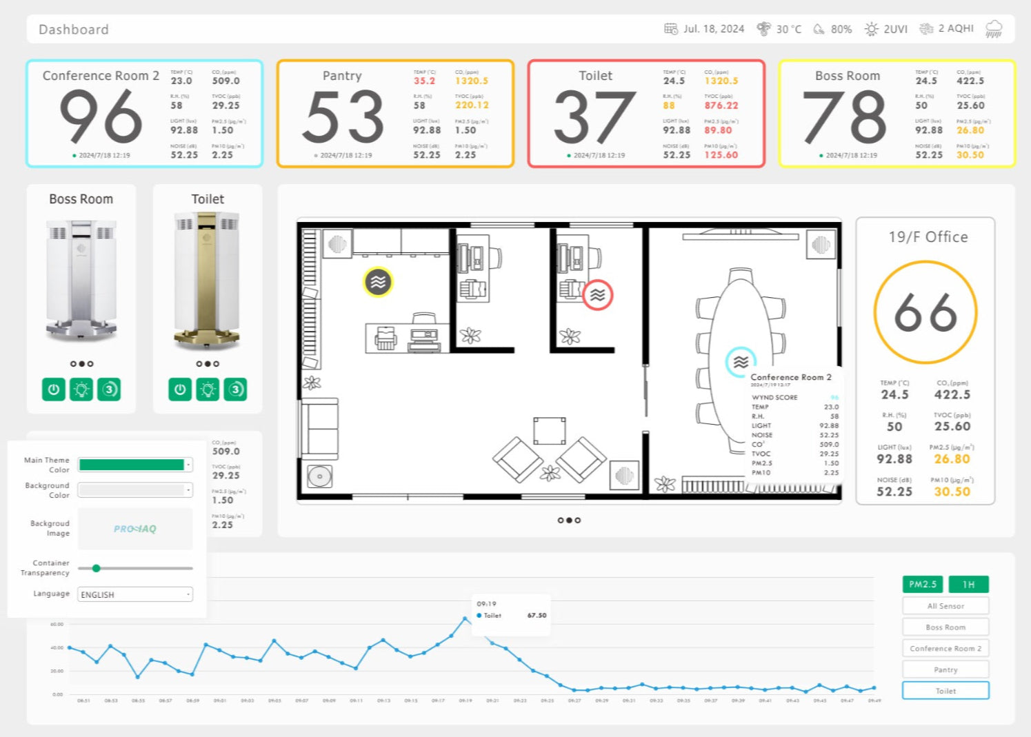 For enterprise user, a web-based IAQ Dashboard is available for detail data analysis with downloadable data at each minute interval. We can provide a Public URL platform for stakeholders to check the general IAQ data. API is also available to extract data and integrations to third party platform.