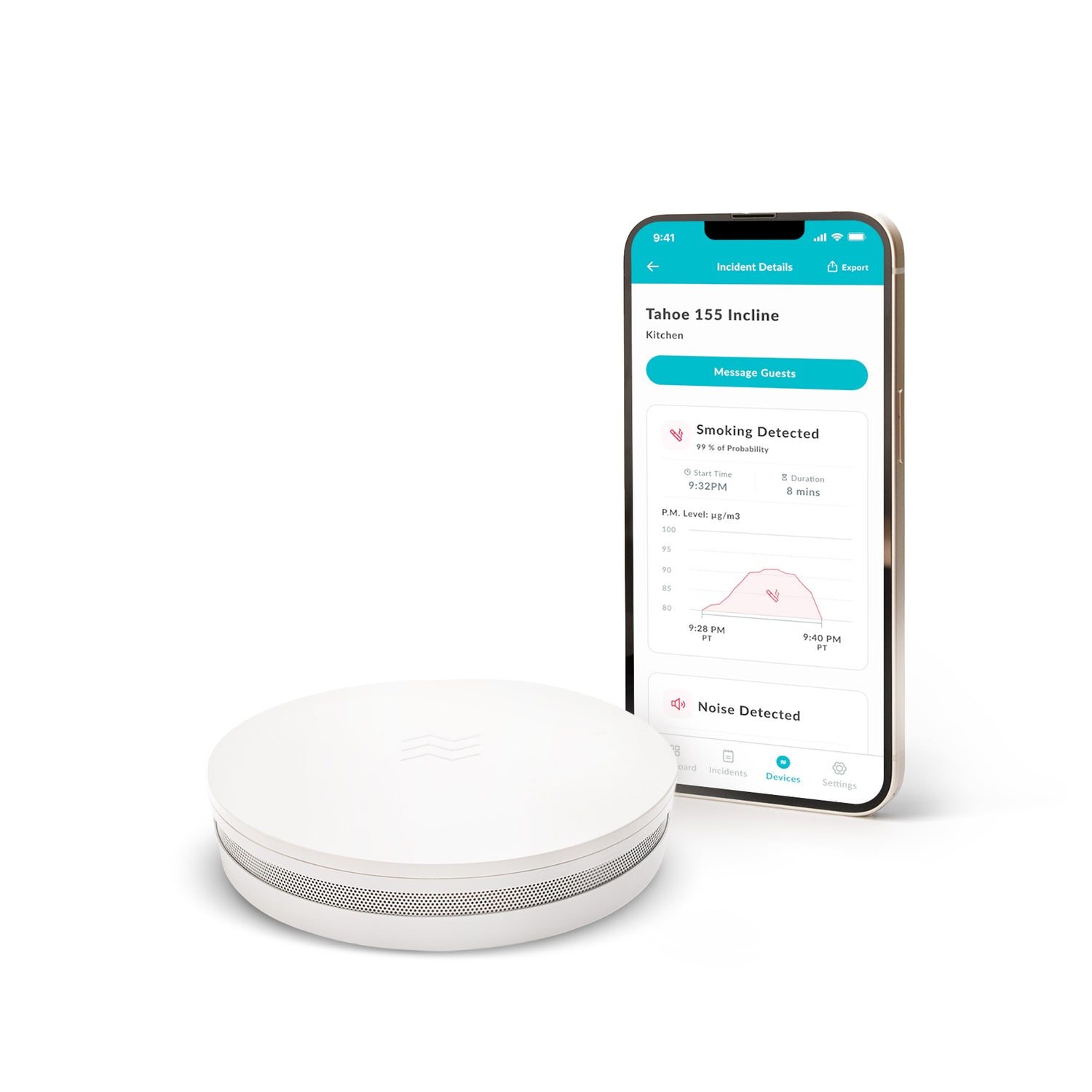WYND Sentry also detects noise levels and alerts user in real time to help maintain a healthy acoustic environment. Instant notification alerts are sent to user when a smoking or noise event is detected.